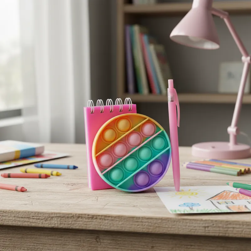 Interactivo con pop it en tapa, usalo como anotador más hasta como juguete anti-estrés y divertido.
