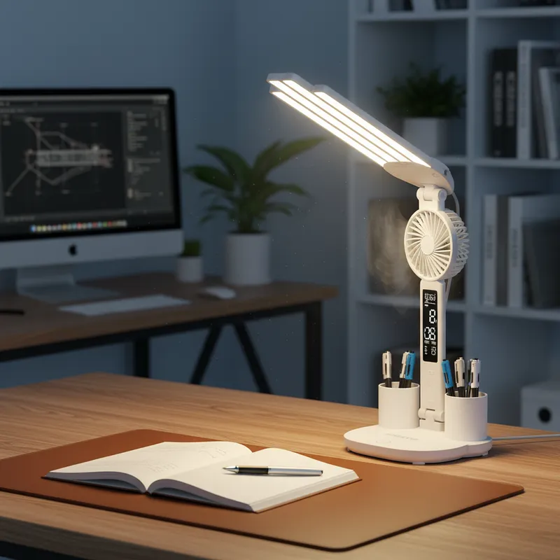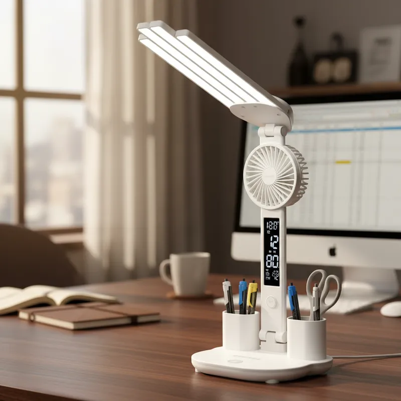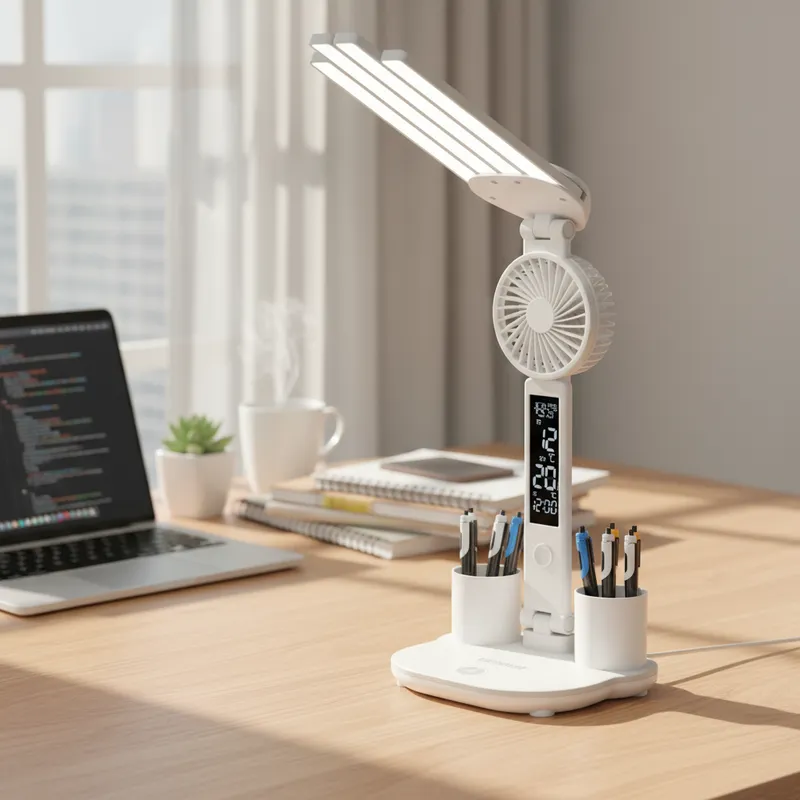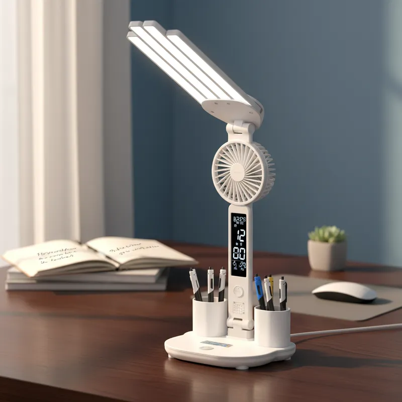 Lámpara de Escritorio Led – Ventilador y Reloj